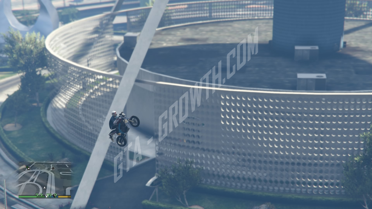 23. Hay una rampa con el logo de la marca Sprunk junto a la tienda Get Aweigh, un distribuidor autorizado de la marca Speedophile cercano al lugar donde se desarrolla la misión de contacto de GTA Online "Bronca en la azotea". Parte desde la calle paralela a las vías de tren y al canal y salta hacia Olympic Freeway para completar el salto. |