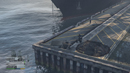 2. Tienes que saltar el agua de este a oeste utilizando una gruesa placa de concreto que se encuentra sobre una montaña de escombros en Terminal. Puedes tomar carrera desde el extremo este de la grúa para contenedores más cercana a la rampa. El objetivo es caer sobre el carril más al oeste de la avenida sin chocar contra los separadores entre los carriles. |