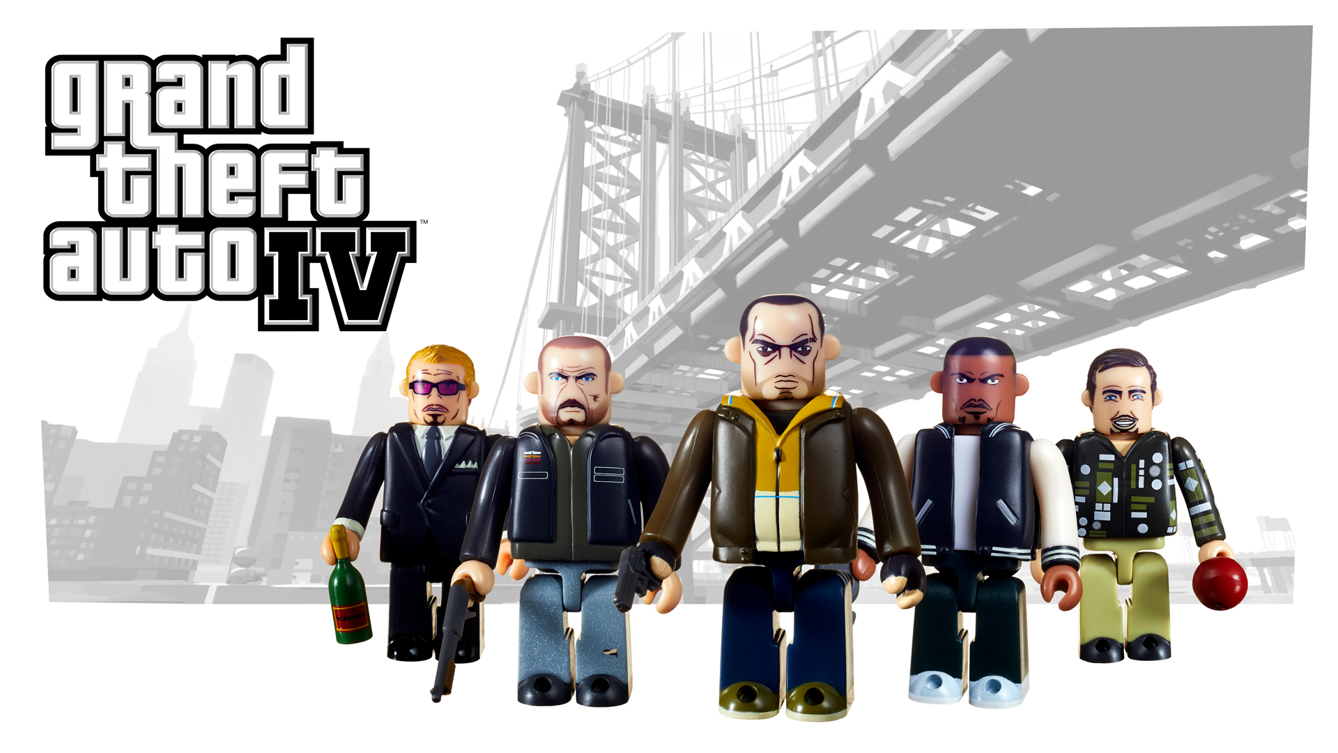 Para celebrar el décimo aniversario de Grand Theft Auto IV, este set de Kubrick presenta a Niko Bellic, exmilitar europeo emigrado a Liberty City, y a su estafador primo Roman. También aparece Johnny Klebitz, veterano de la banda de motociclistas Lost y estrella de The Lost and Damned, así como Luis Lopez y Tony Prince, de The Ballad of Gay Tony.