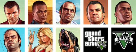 Rockstar lanzó un conjunto de avatares de GTA V que pueden ser usados en la PlayStation®Network y en Xbox LIVE para demostrarle a todo el mundo que viajarás al este el próximo mes de septiembre, para disfrutar de una renovada ciudad de Los Santos. Las imágenes representan a los protagonistas del juego (Michael, Franklin y Trevor), a la perra rottweiler llamada Chop y una chica en Vespucci Beach, además de dos variantes del logo del juego.