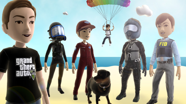 También está disponible en Xbox LIVE una nueva colección de trajes temáticos de GTA V para usar como avatar de Xbox 360. Los trajes tienen un precio de 320 Microsoft Points cada uno, mientras que las camisetas individuales están disponibles por 80 Microsoft Points. La perra Chop o el paracaídas se puede obtener por 240 Microsoft Points.